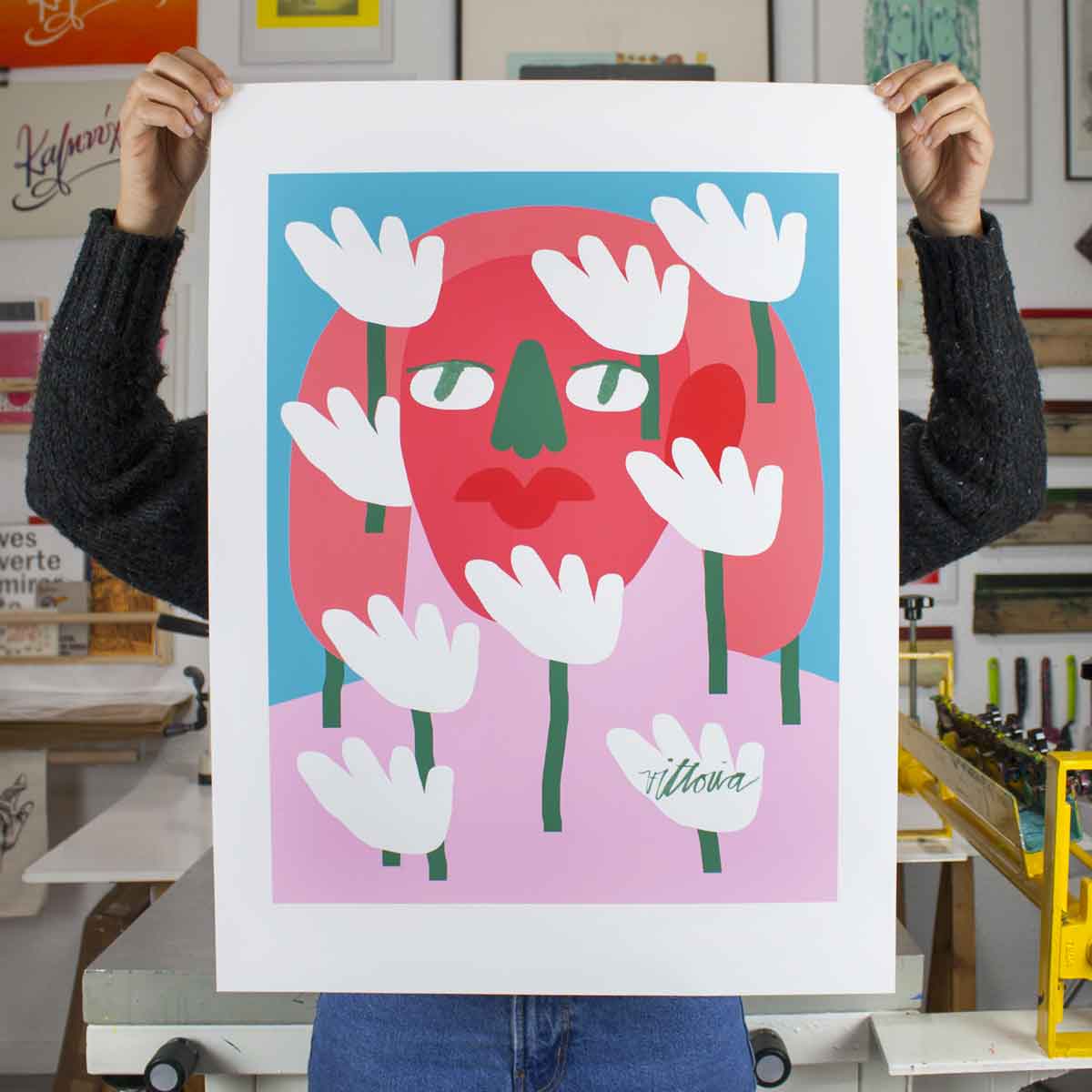 Serigrafía a 5 tintas sobre papel Bristol Ultrawhite de 640 g.