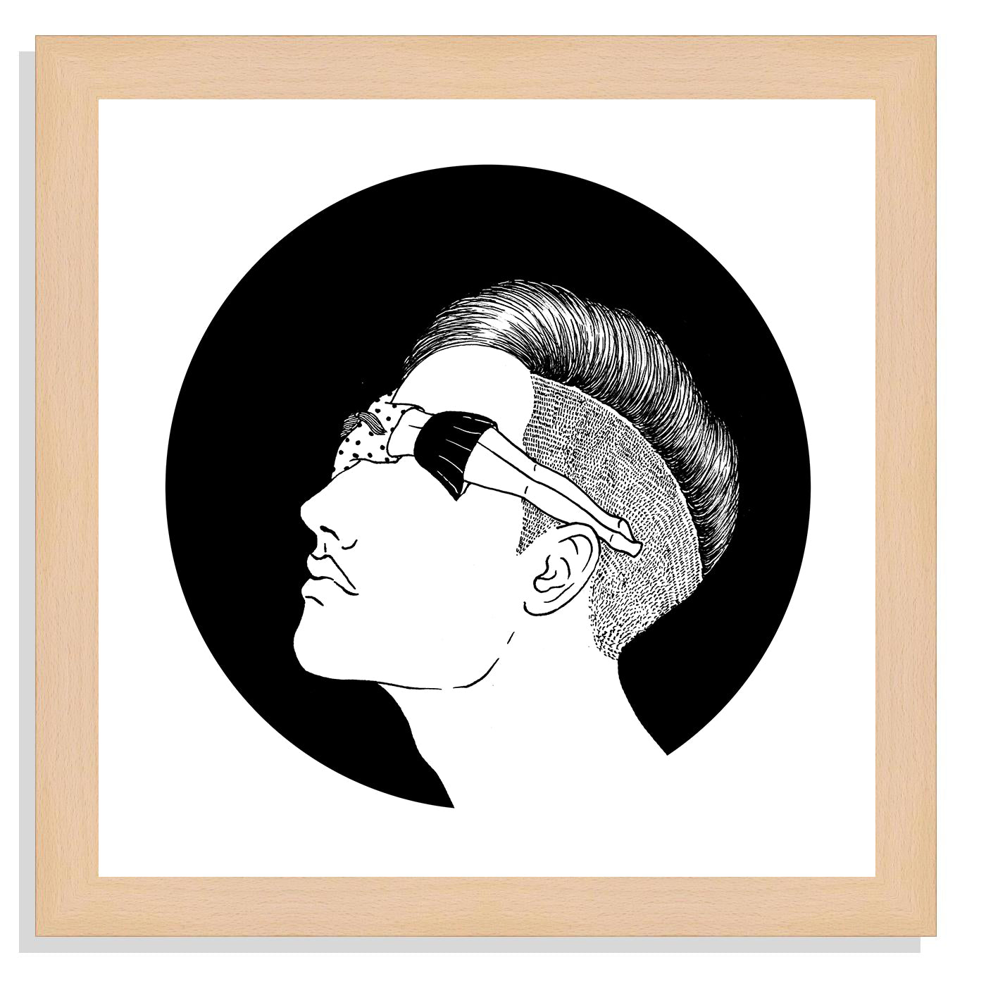 Un joven enamorado. Ciego por la presencia de su amada. La artista de Corea del Sur, Henn Kim, ha creado esta obra en exclusiva para Gunter Gallery –firmada y numerada por la artista– que resuelve de manera surrealista el amor entre dos personas. El rostro de él, enmarcado en una circunferencia de color negro, hace vislumbrar la oscuridad que vive, cegado de amor, donde "únicamente puede ver una cosa”: Ella.